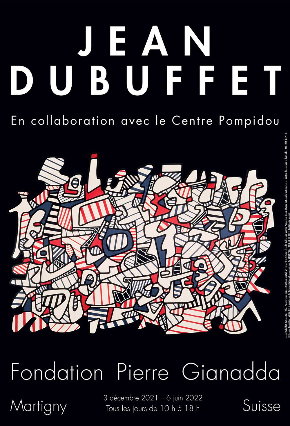La magnifique rétrospective Jean Dubuffet présentée à la Fondation Pierre Gianadda, en collaboration avec le Centre Georges-Pompidou à Paris, propose une relecture du travail du grand défenseur de « l'Art Brut ». Bien qu’il ait, paradoxalement, refusé la culture dominante, les écoles, les courants et les techniques enseignées, son œuvre occupe une place majeure dans le paysage artistique de la seconde moitié du XXe siècle.